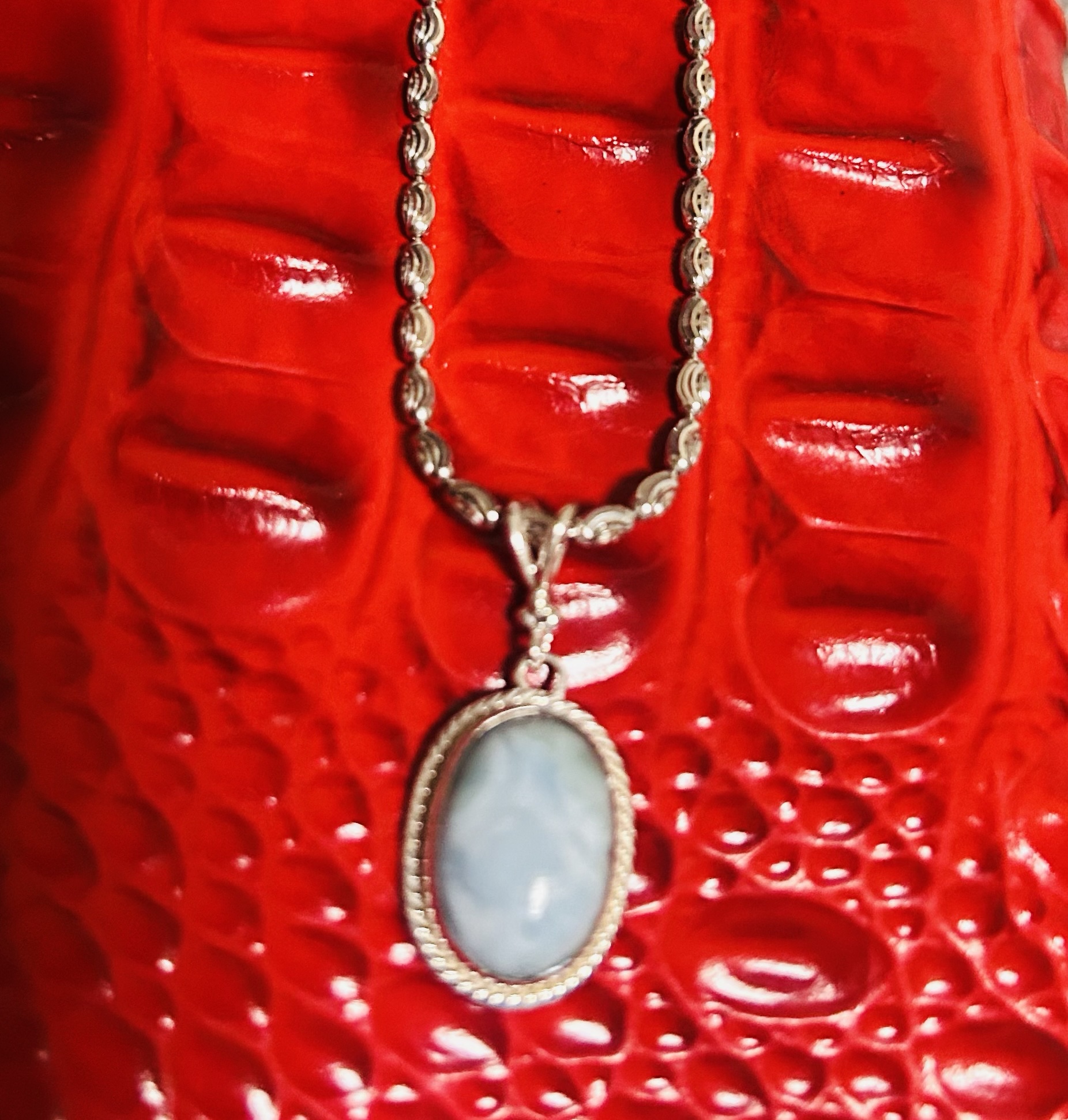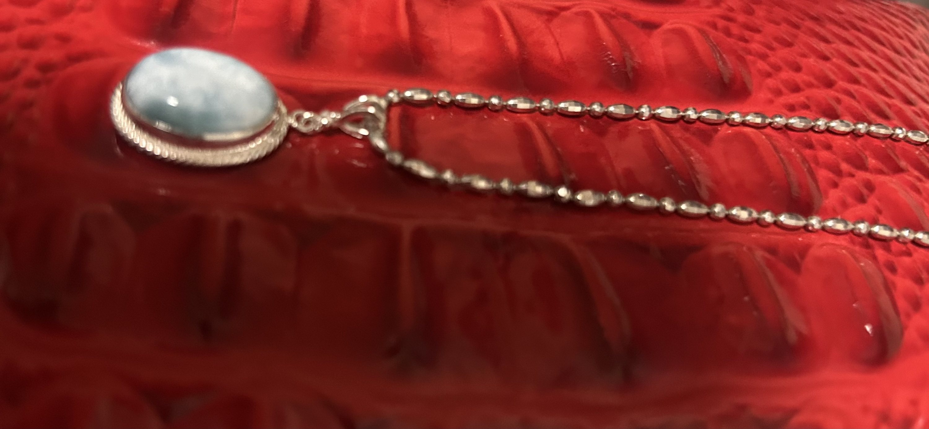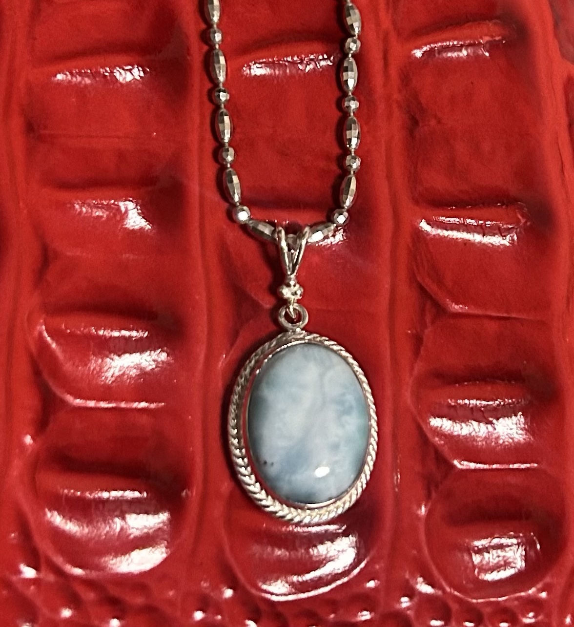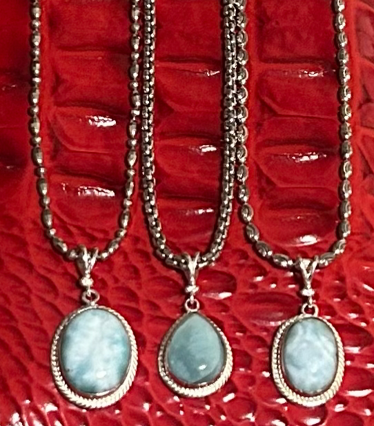 Indigenous to the Dominican Republic, this beautiful oceanic blue stone was named after the daughter of its discoverer, Larissa, and the Spanish word for sea, mar–thus, Larimar.